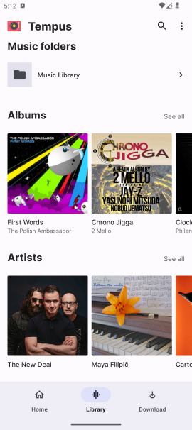 **Tempus** is an open-source and lightweight music client for Subsonic, designed and built natively for Android. It provides a seamless and intuitive music streaming experience, allowing you to access and play your Subsonic music library directly from your Android device. Tempus does not rely on magic algorithms to decide what you should listen to. Instead, the interface is built around your listening history, randomness, and optionally integrates with services like Listenbrainz.org and Last.fm to personalize your music experience (These must be supported by your backend). The project is a fork of [Tempo](#credits). [Changelog](CHANGELOG.md) [Wiki](USAGE.md) [Donate](https://github.com/eddyizm/tempus#Support) **If you find Tempus useful, please consider starring the project on GitHub. It would mean a lot to me and help promote the app to a wider audience.** **Use the Github version of the app for full Android Auto and Chromecast support.** sha256 signing key fingerprint `B7:85:01:B9:34:D0:4E:0A:CA:8D:94:AF:D6:72:6A:4D:1D:CE:65:79:7F:1D:41:71:0F:64:3C:29:00:EB:1D:1D` ### Releases Please note the two variants in the release assets include release/debug and 32/64 bit flavors. `app-tempus` <- The github release with all the android auto/chromecast features `app-degoogled*` <- The izzyOnDroid release that goes without any of the google stuff. It is now available on izzyOnDroid (64bit) I am releasing the both 32/64bit apk's here on github for those who need a 32bit version. ## Features - **Subsonic Integration**: Tempus seamlessly integrates with your Subsonic server, providing you with easy access to your entire music collection on the go. - **Sleek and Intuitive UI**: Enjoy a clean and user-friendly interface designed to enhance your music listening experience, tailored to your preferences and listening history. - **Browse and Search**: Easily navigate through your music library using various browsing and searching options, including artists, albums, genres, playlists, decades and more. - **Streaming and Offline Mode**: Stream music directly from your Subsonic server. Offline mode is currently under active development and may have limitations when using multiple servers. - **Playlist Management**: Create, edit, and manage playlists to curate your perfect music collection. - **Gapless Playback**: Experience uninterrupted playback with gapless listening mode. - **Chromecast Support**: Stream your music to Chromecast devices. The support is currently in a rudimentary state.* - **Scrobbling Integration**: Optionally integrate Tempus with Last.fm or Listenbrainz.org to scrobble your played tracks, gather music insights, and further personalize your music recommendations, if supported by your Subsonic server. - **Podcasts and Radio**: If your Subsonic server supports it, listen to podcasts and radio shows directly within Tempus, expanding your audio entertainment options. - **Instant Mix**: Full refactor of instant mix function which leverages subsonics similarSongs2 by artist/album and similarSongs endpoints to server a larger play queue more reliably. - **Transcoding Support**: Activate transcoding of tracks on your Subsonic server, allowing you to set a transcoding profile for optimized streaming directly from the app. This feature requires support from your Subsonic server. - **Android Auto Support**: Enjoy your favorite music on the go with full Android Auto integration, allowing you to seamlessly control and listen to your tracks directly from your mobile device while driving.* - **Multiple Libraries**: Tempus handles multi-library setups gracefully. They are displayed as Library folders. - **Equalizer**: Option to use in app equalizer. - **Widget**: New widget to keeping the basic controls on your screen at all times. - **Available in 11 languages**: Currently in Chinese, French, German, Italian, Korean, Polish, Portuguese, Russion, Spanish and Turkish **Github version only* ## ScreenshotLight theme