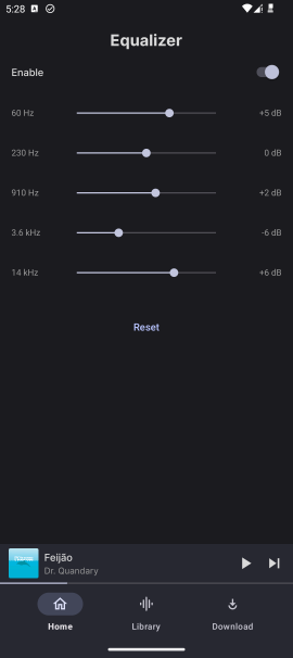 • Equalizer: Option to use in app equalizer.